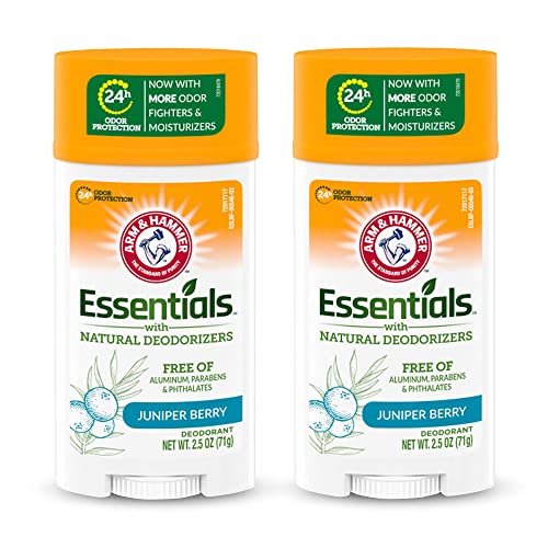 ARM & HAMMER Essentials Deodorant- Clean Juniper Berry- Wide Stick- Made with Natural Deodorizers- Free From Aluminum, Parabens & Phthalates, 2.5 oz (Pack of 2)