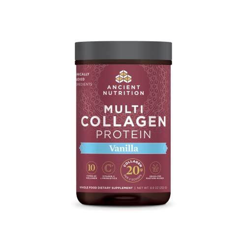 Collagen Powder Protein by Ancient Nutrition, Multi Collagen Vanilla Powder, 24 Serving, Collagen Peptides Support Skin, Nails, Gut Health, 8.9oz