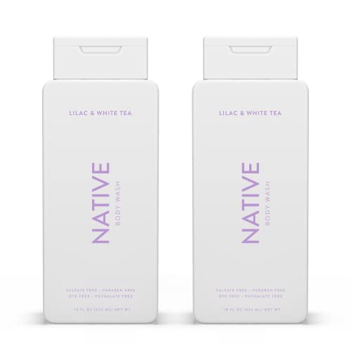 Native Body Wash Natural Body Wash for Women, Men | Sulfate Free, Paraben Free, Dye Free, with Naturally Derived Clean Ingredients Leaving Skin Soft and Hydrating, Lilac & White Tea 18 oz – 2 Pk