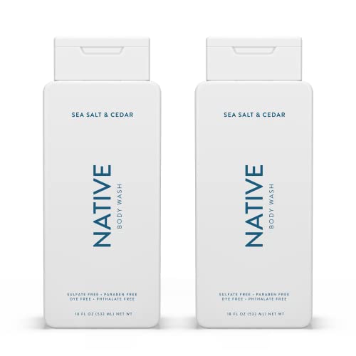 Native Body Wash Natural Body Wash for Women, Men | Sulfate Free, Paraben Free, Dye Free, with Naturally Derived Clean Ingredients Leaving Skin Soft and Hydrating, Sea Salt & Cedar 18 oz – 2 Pk